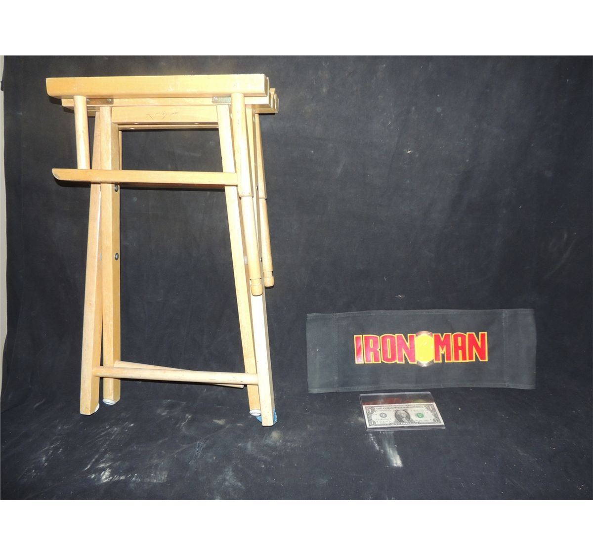 This is Stan Lee's personal used Director's Chair he sat in during the filming of IRON MAN! It does have the seat section, but I forgot to put it in when taking photos. There is damage to one rung at bottom as seen in photos. That dowel should be replaced if you intend to sit in this, but I would leave it as is because that shows the use on set.