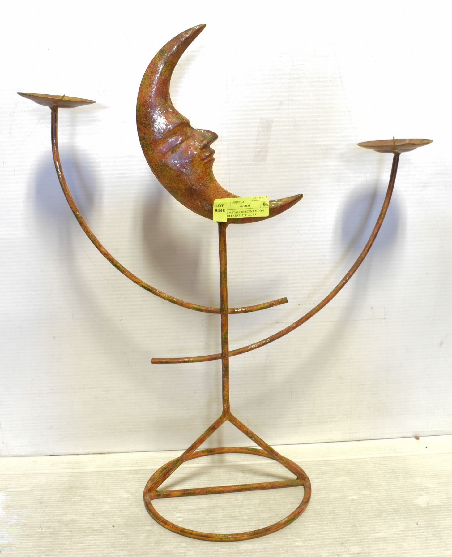 IRON METAL CRESCENT MOON CANDELABRA APPR 20 IN