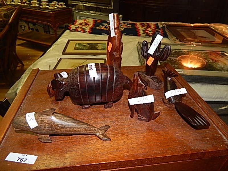 IRON WOOD CARVED ANIMALS - 7 TOTAL
