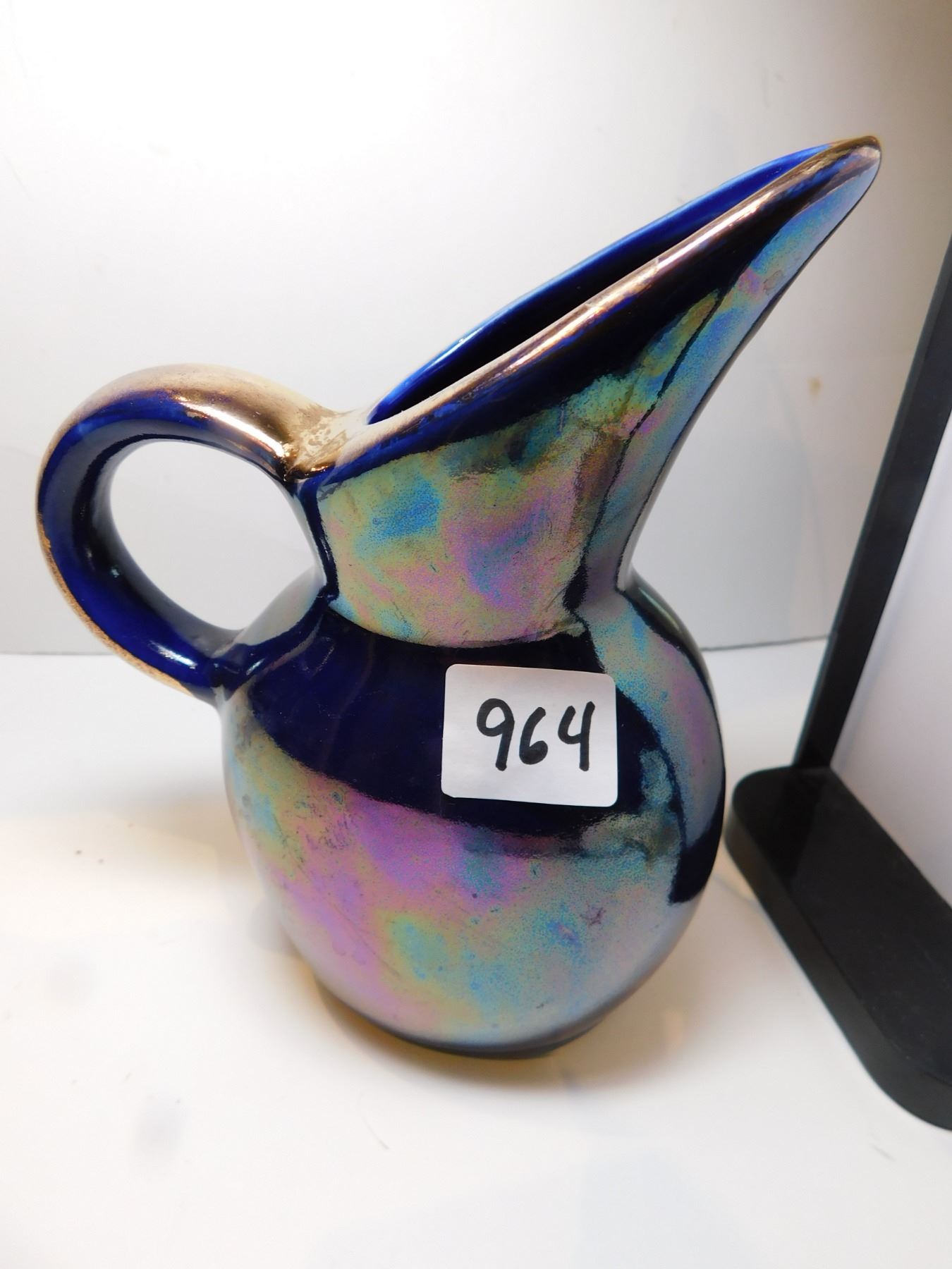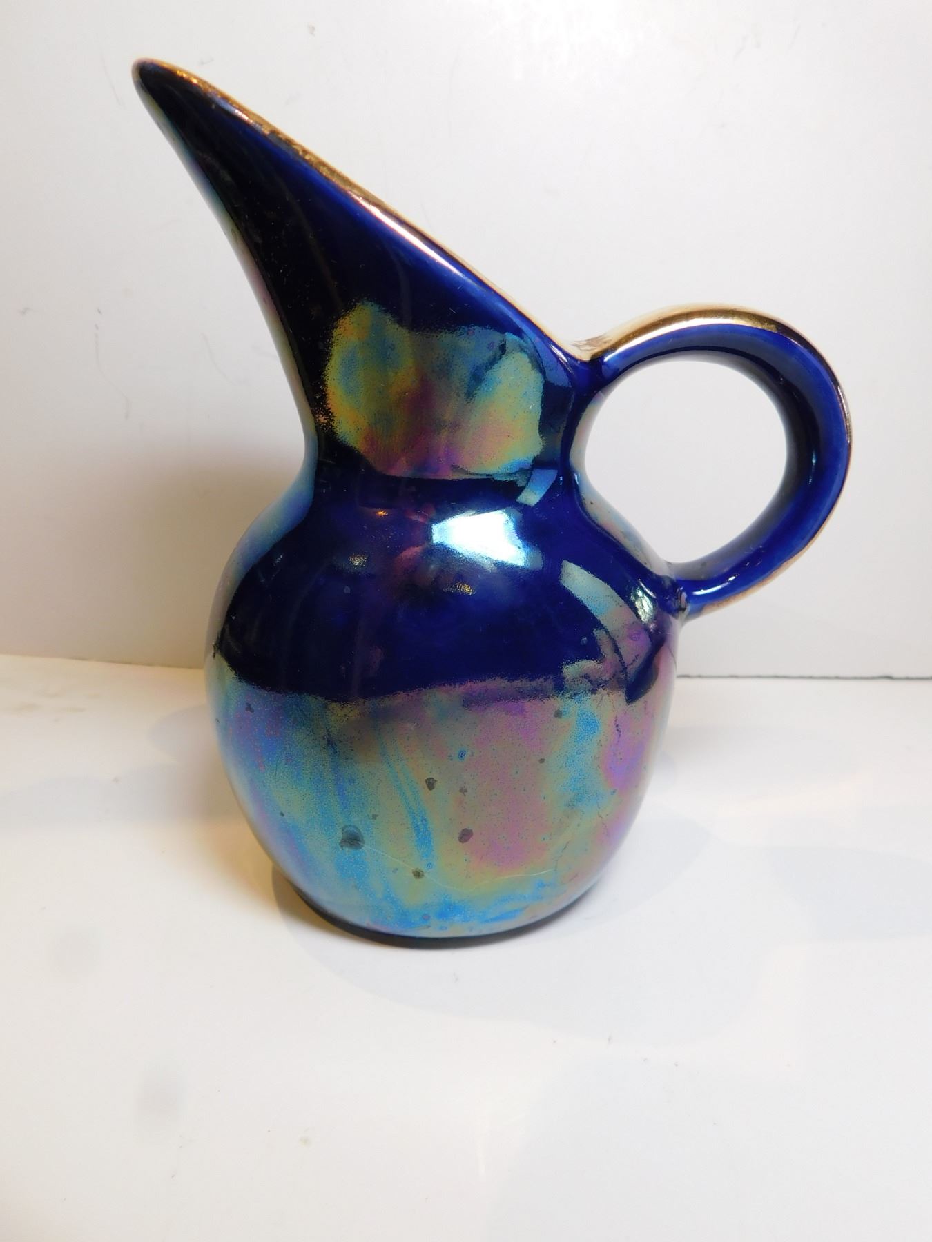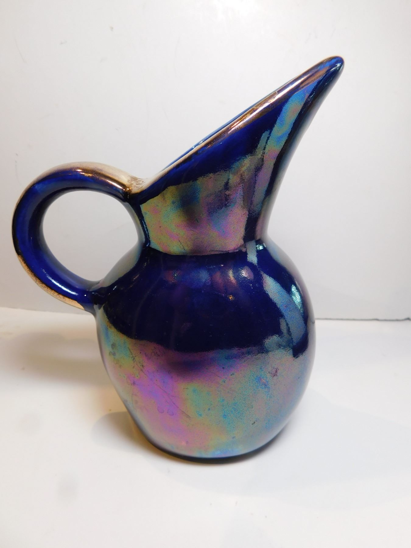IRRIDESCENT COBALT BLUE LUSTRE, PITCHER VASE, MADE IN ENGLAND
