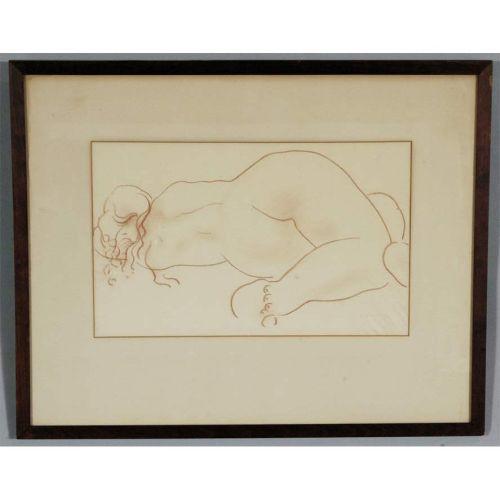 ISAMU NOGUCHI sanguine drawing of a reclining nude 10 1/4"x16 3/4" sight signed "Isamu" lower right in pencil, circa 1930 CONDITION REPORT: light smudge on subject's ankle, some wrinkles near edges in spots,