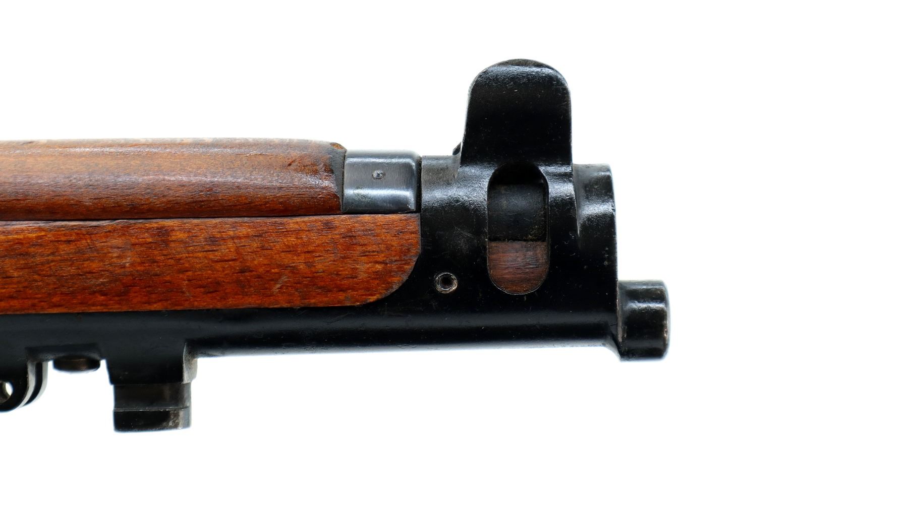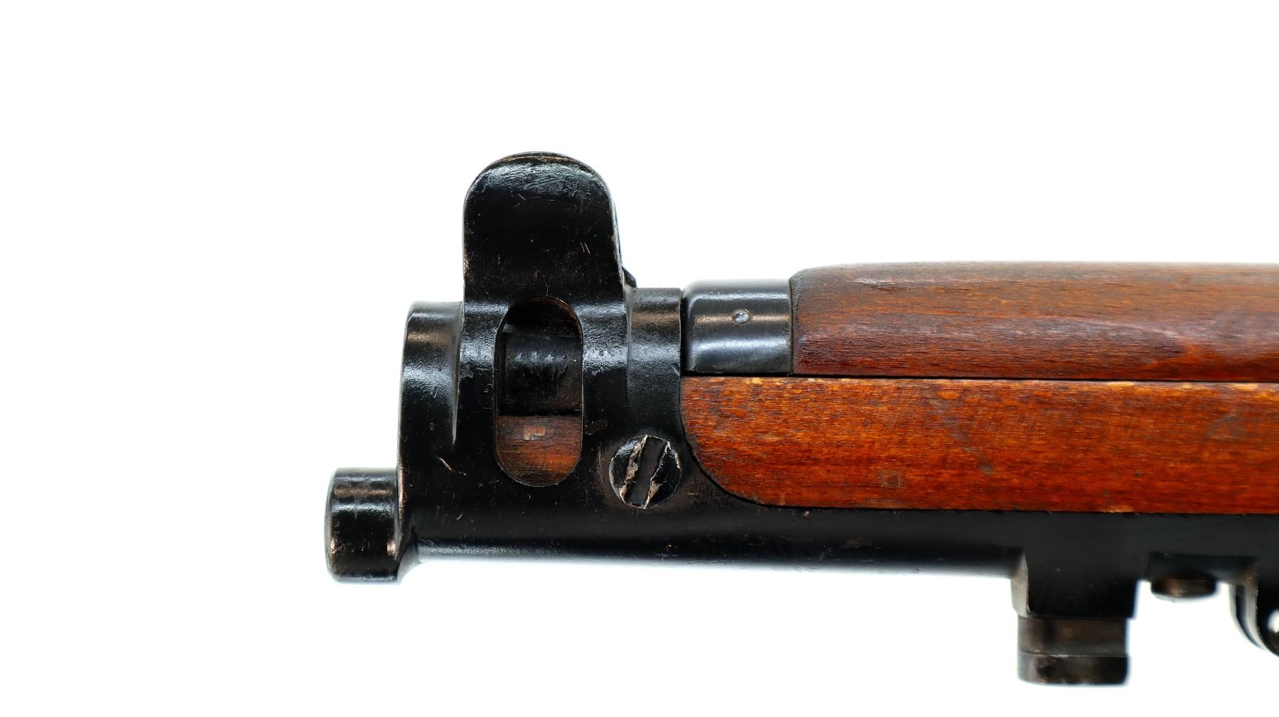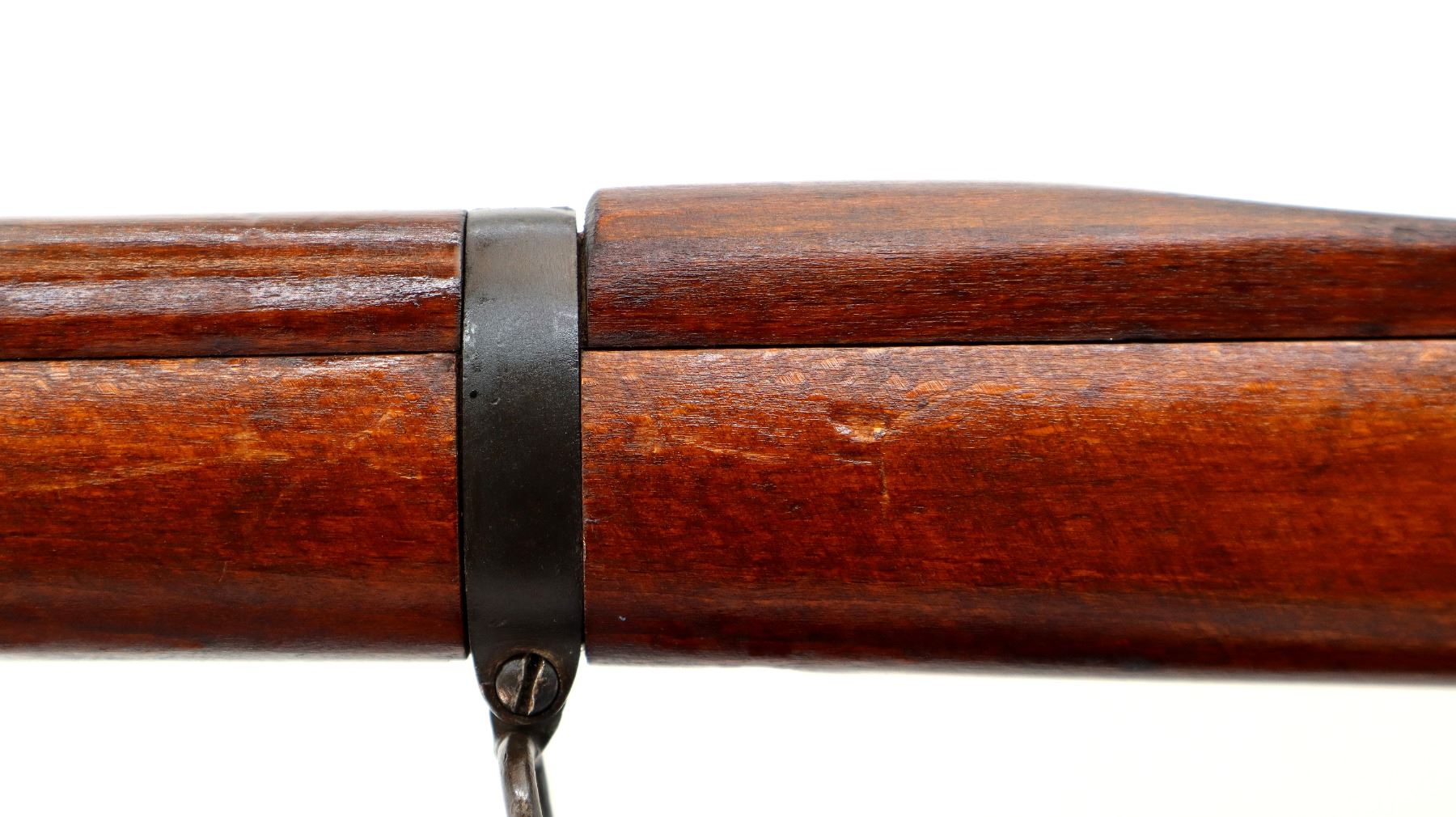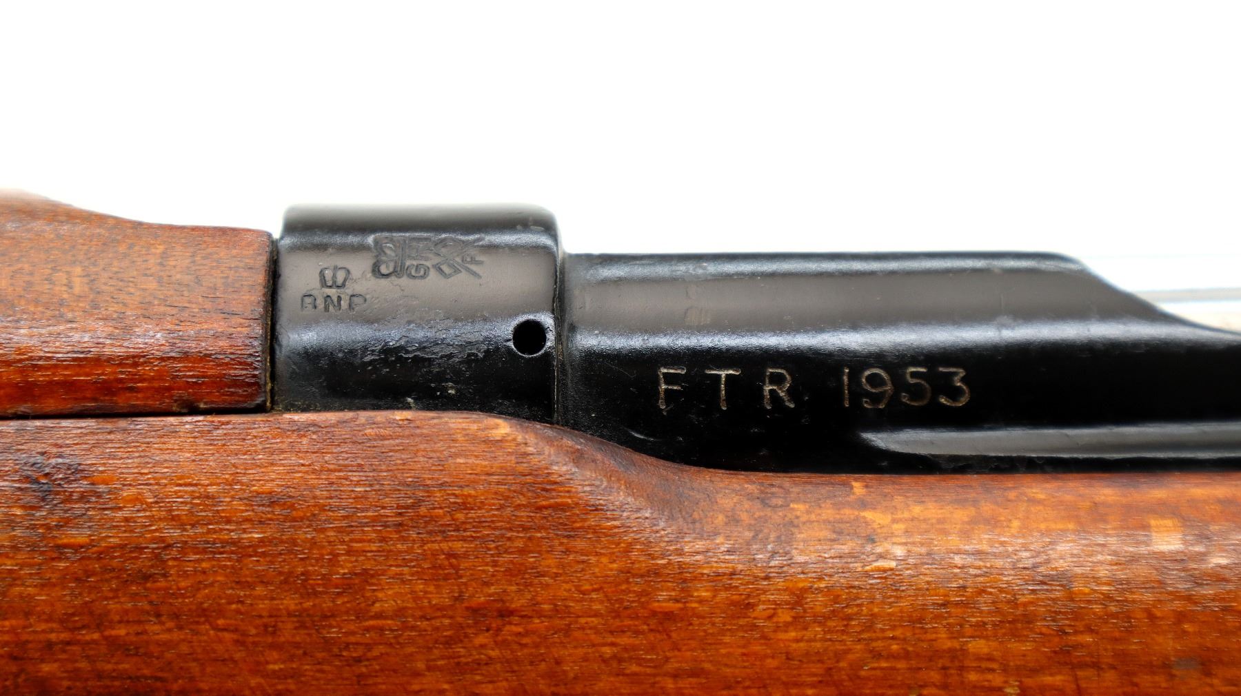Main Description: Manufactured by GRI 1943, FTR 1953, visible numbers match including rear sight. Blade front sight with ears and ramp, adjustable u notched rear sight with ears, black painted metal finish. Four piece full military wood stocks, pistol grip, smooth brass butt plate with trap that has pull thru and brown polymer oiler. Sling swivels, bayonet lug.