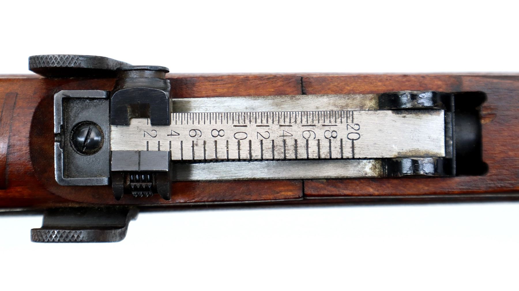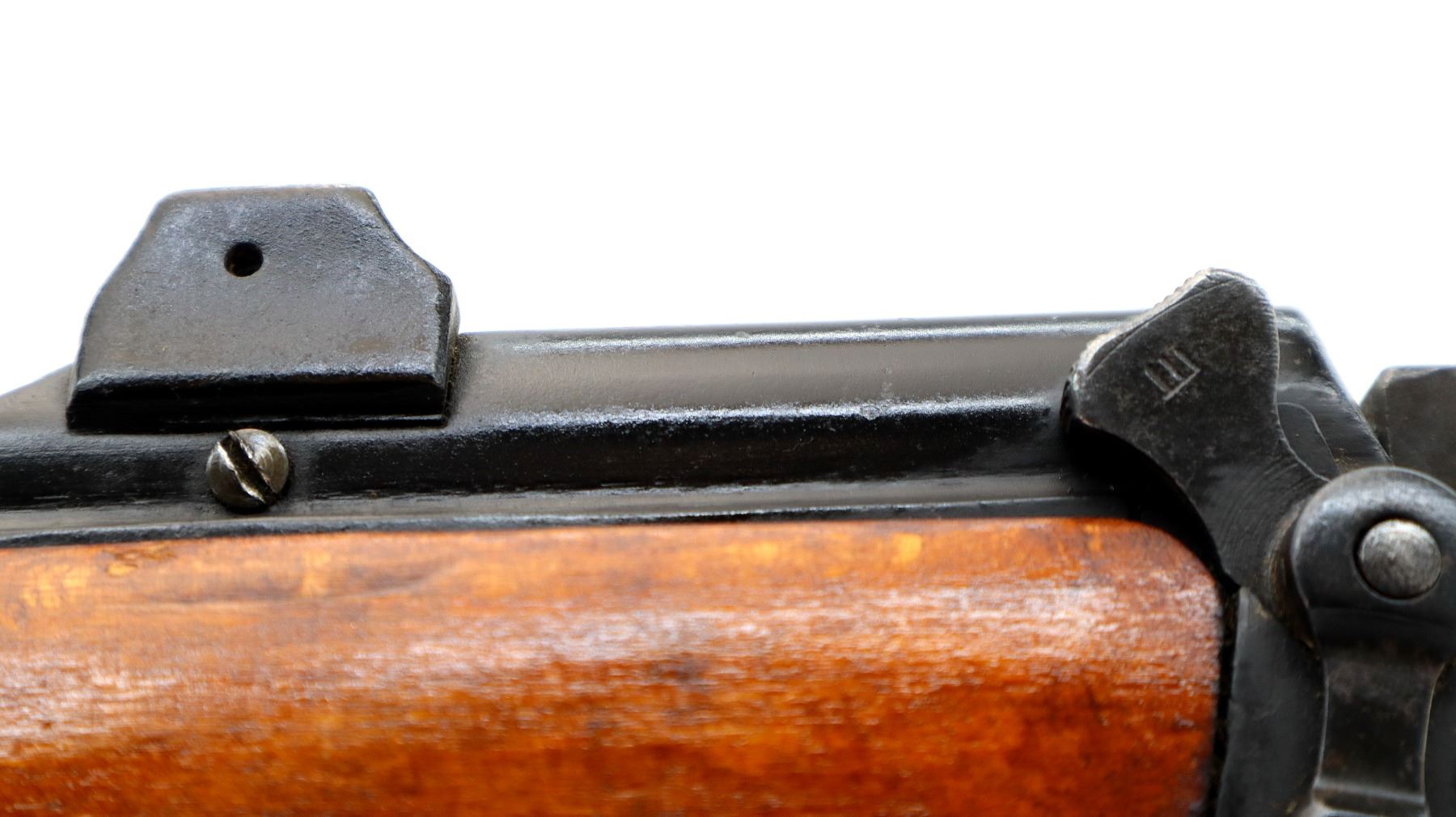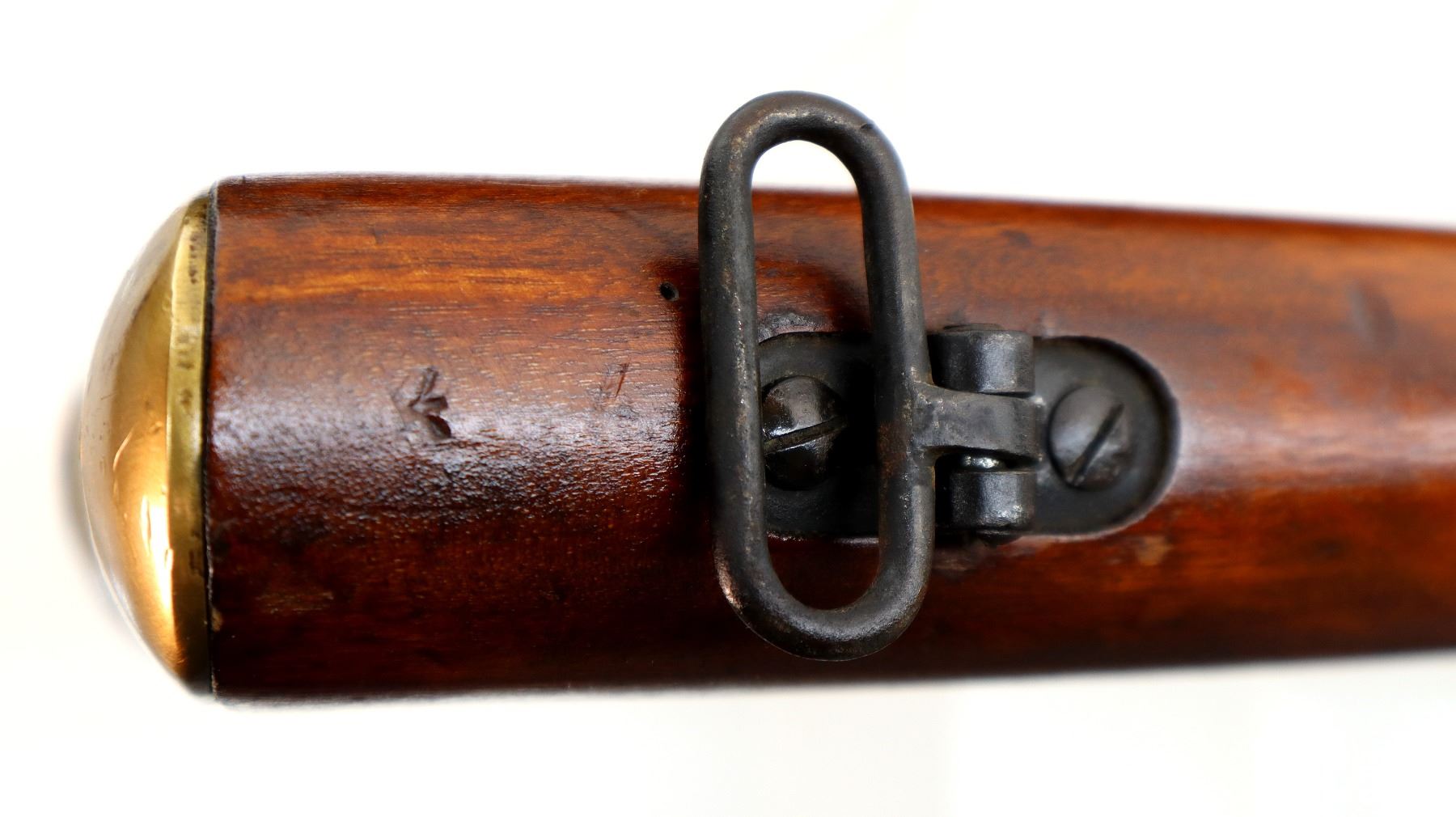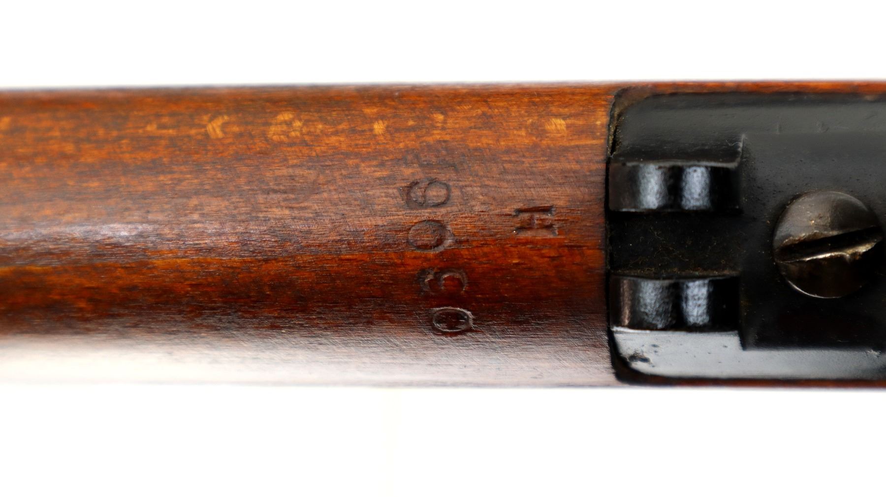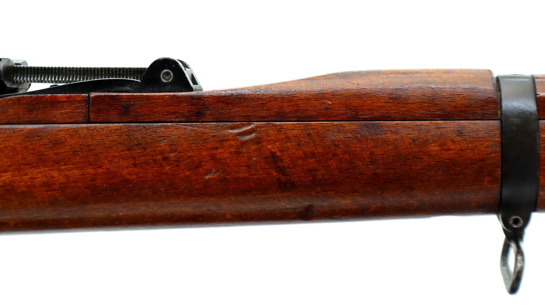 Main Description: Manufactured by GRI 1943, FTR 1953, visible numbers match including rear sight. Blade front sight with ears and ramp, adjustable u notched rear sight with ears, black painted metal finish. Four piece full military wood stocks, pistol grip, smooth brass butt plate with trap that has pull thru and brown polymer oiler. Sling swivels, bayonet lug.