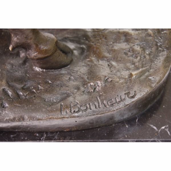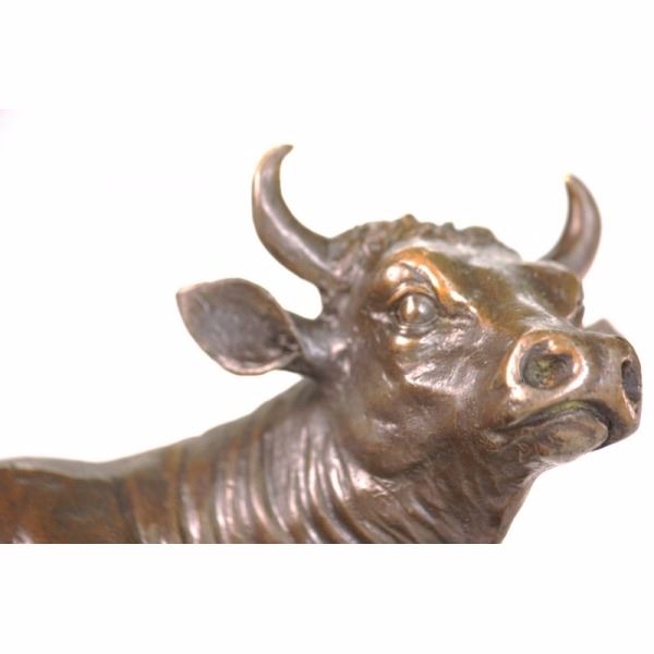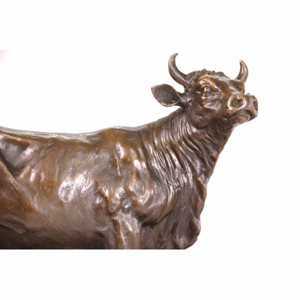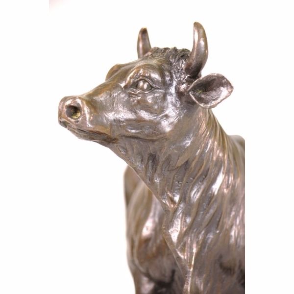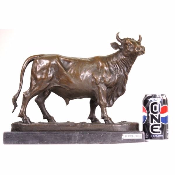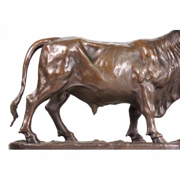 If you don't know who to talk to about the stock market, talk to this guy! His eyes follow you across the room as you move. And, he won't talk back! Made of solid bronze by lost wax method.. It is very expressive and has been well sculpted. From the bottom of the base to the tip of the horn is about 11 inches. It weighs slightly over 13 lbs. If you're feeling a little bullish, then here's a bull for you! With the current stock market conditions, anything might help! The price is incredible...and the quality is good. You could easily put a plaque on the base of this bull sculpture.Sculptor - Isidore Jules BonheurTitle - Taureau Beuglant Sand Cast BronzeCirca 1865 11" height by 13 1/2" lengthThis large finely detailed and finished bronze of the charging bull is the pendant to the Charging Bull. Isidore Bonheuris best known for his domestic cattle and bulls and this large bulls were cast by his brother-in-law Hippolyte Peyrol. This Bull is finished in a beautiful deep brown patina.It is extremely unusual to find such an impressive bulls would be the focal point of any room. Condition: This sculpture is in a very good condition. Bronze Dimensions with Marble Base:Height 10.5" x Width 13 /2"Marble Dimensions: 13.5" X 6".Height without base: 12 " Weight : 15 LBSInventory: 3290K13323 If you don't know who to talk to about the stock market, talk to this guy! His eyes follow you across the room as you move. And, he won't talk back! Made of solid bronze by lost wax method.. It is very expressive and has been well sculpted. From the bottom of the base to the tip of the horn is about 11 inches. It weighs slightly over 13 lbs