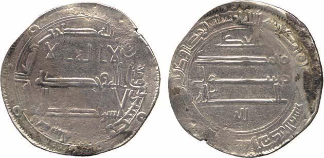 ISLAMIC COINS, Abbasid. Anonymous, temp al-Mu’tasim, Dirham, no mint, 22xh, rev al-‘adl above central legend, 4.30g. Some hornsilver on reverse, very fine, rare and unusual.