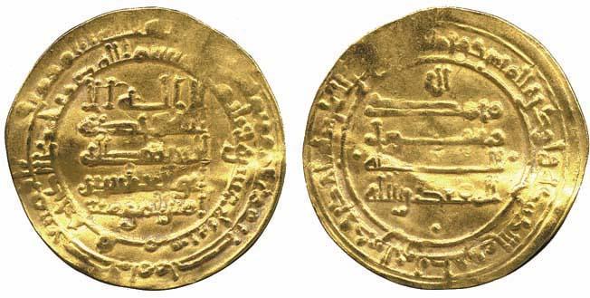 ISLAMIC COINS, Abbasid. al-Muqtadir, with heir abu’l-‘Abbas, Gold Dinar, Qumm 313h, 3.78g. Crimped, very fine and very rare.