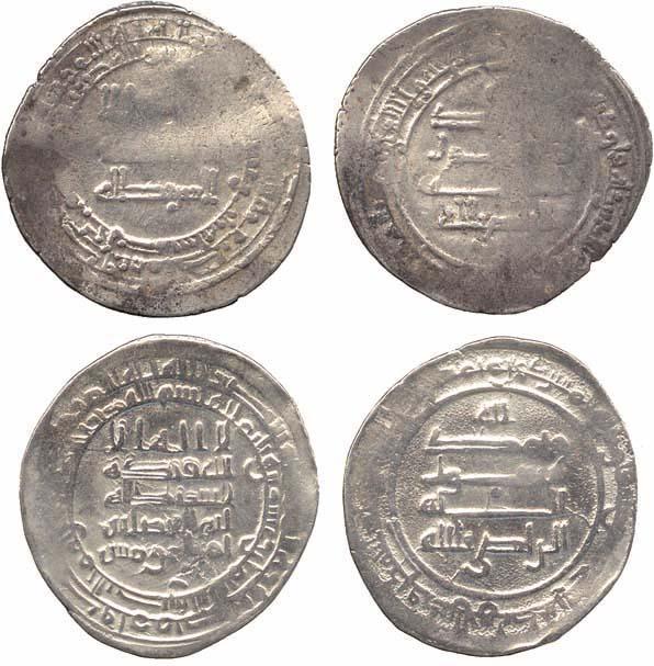 ISLAMIC COINS, Abbasid. al-Radi, Dirhams (2), Halab 323h, 2.29g and al-Basra 328h, 4.08g. First partly flat, fine and rare, the second cleaned, edge weakness, about very fine. (2)