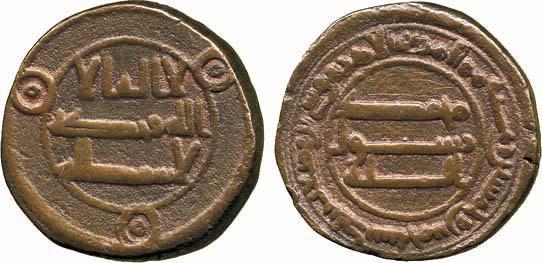 ISLAMIC COINS, Abbasid. temp. al-Mansur, Fals, Balad 155h, citing Musa b. Mus’ab, 8.35g (L 282; A 302). Lightly scratched in upper reverse field, otherwise very fine, rare.