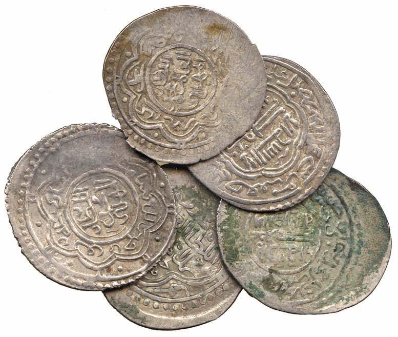 ISLAMIC COINS, Afrasiyabid. Anonymous, 6-Dirhams (5), Sari, 759h (2), date unclear (3), in the name of al-Mahdi Muhammad (A A2347). Mostly very fine with some weakness, rare. (5)