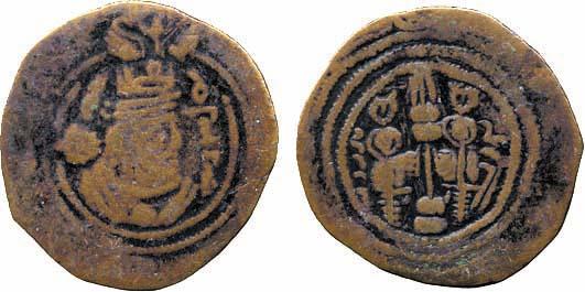 ISLAMIC COINS, Arab Sasanian. Farrukhzad (c.70-80h), Fals, GWBR = Jur, year 8?, 2.68g (A 41 var). Fine and rare.