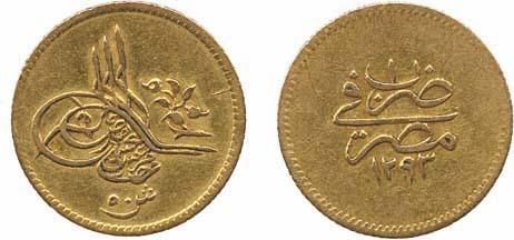 ISLAMIC COINS, Ottoman. Murad V, Gold ½-Guinea/50-Ghurush, Misr 1293h, year 1, 4.24g. Good very fine and rare.