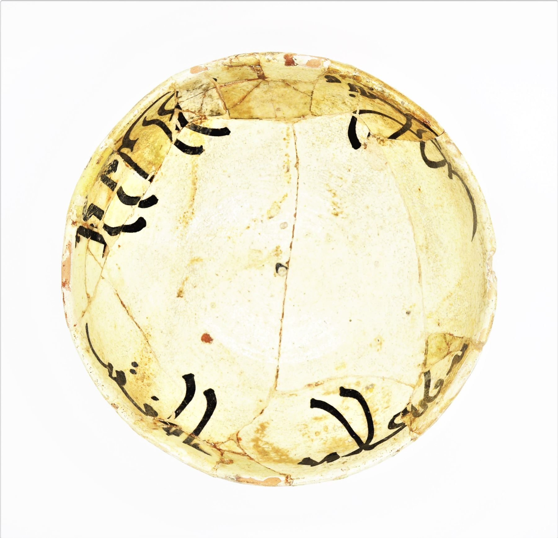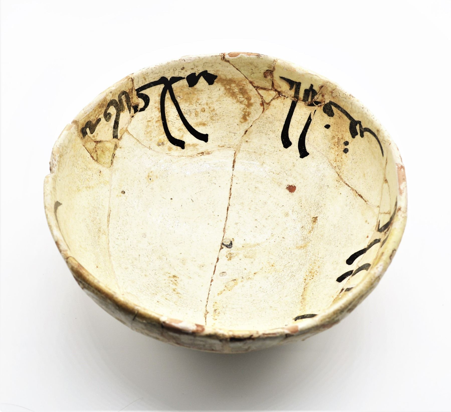 ANCIENT ISLAMIC SAMANID CALLIGRAPHIC POTTERY BOWL, PROBABLY SAMARKAND CENTRAL ASIA CIRCA 10TH CENTURY, With Kufic Calligraphy, Samanids were Ruling During Abbasid Dynasty.
