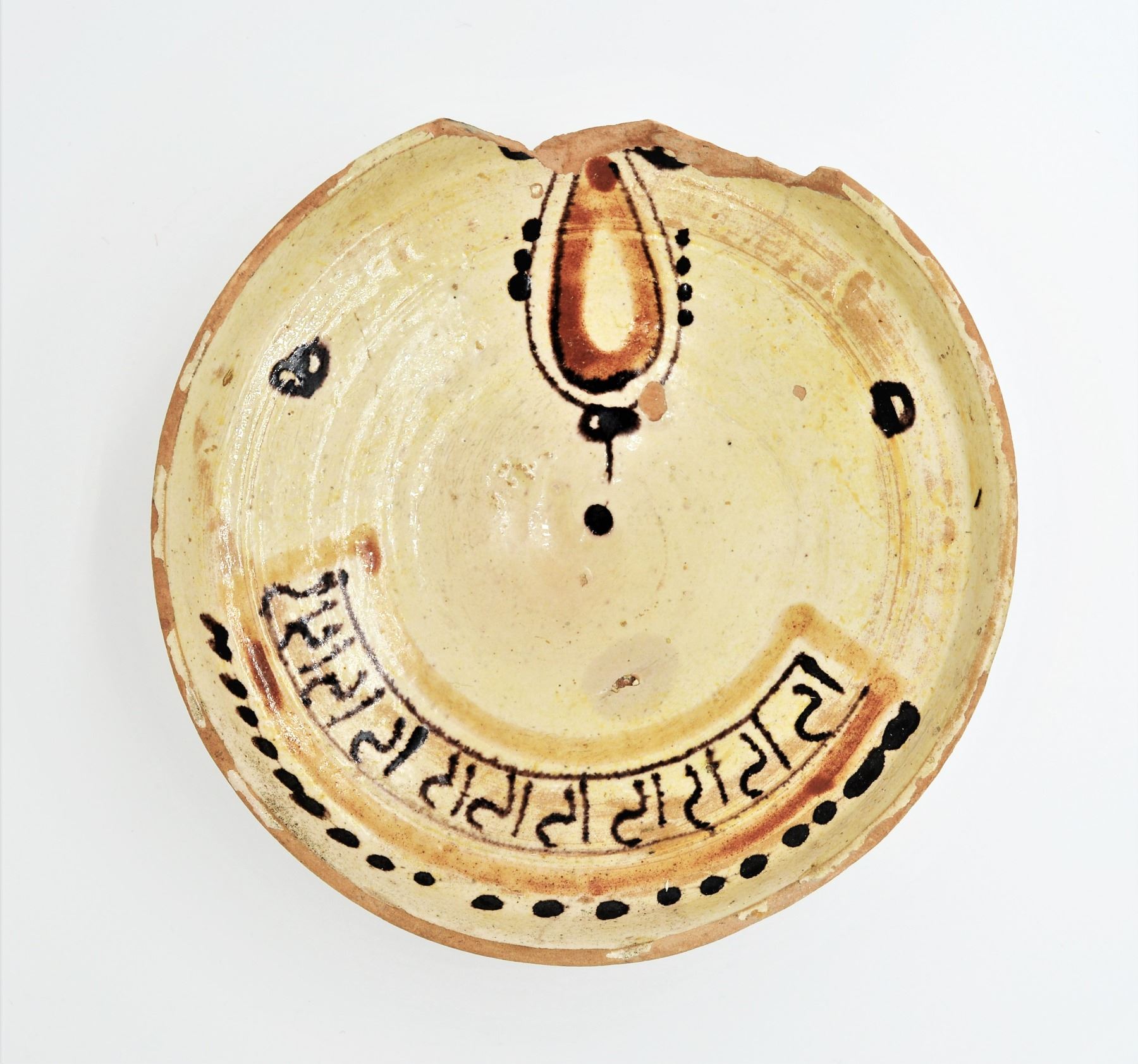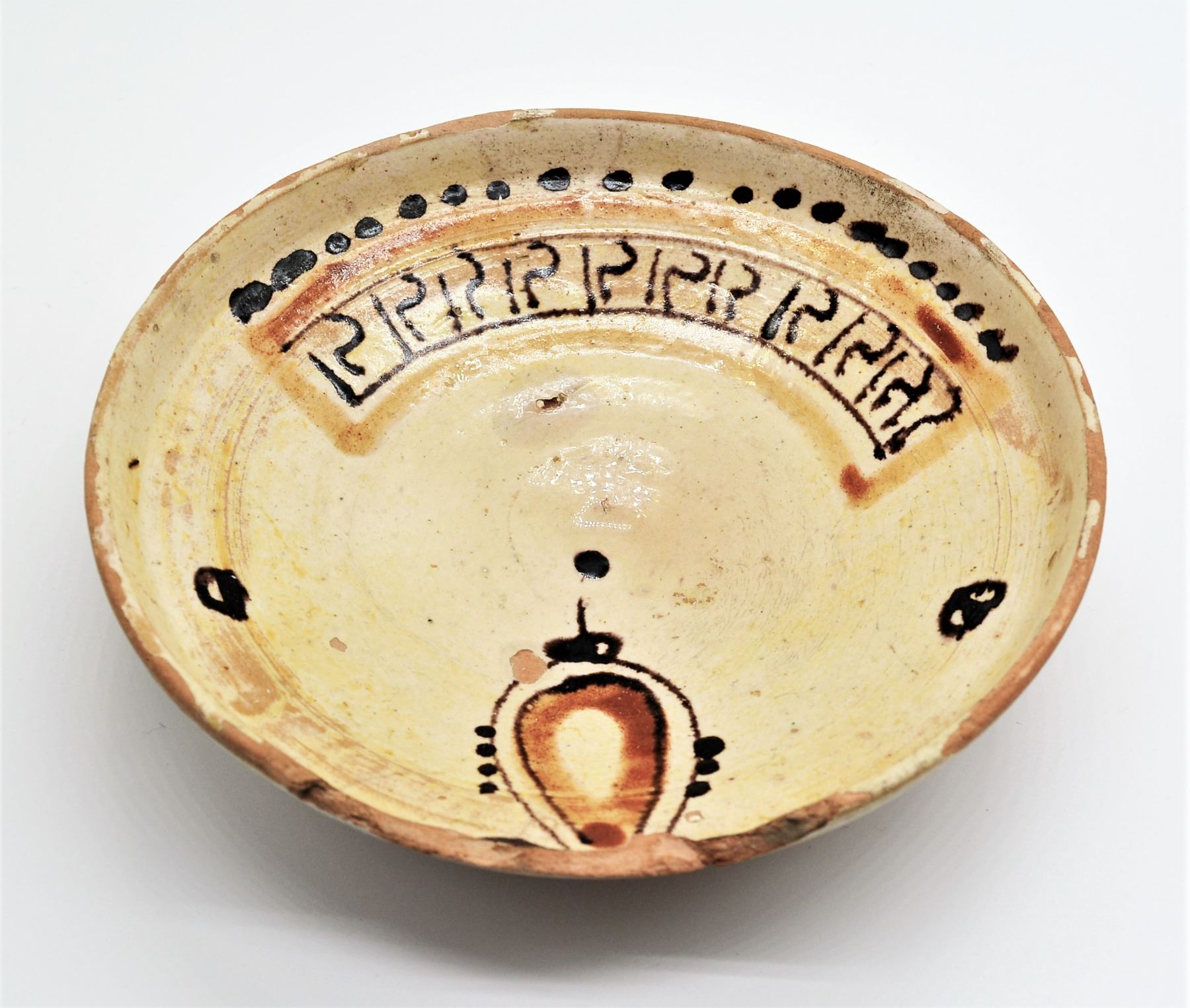 UNUSUAL ANCIENT ISLAMIC SAMANID CALLIGRAPHIC POTTERY BOWL, PROBABLY SAMARKAND CENTRAL ASIA CIRCA 10TH-11TH CENTURY, With Calligraphy probably designed kufic or other languages, Samanids were Ruling During Abbasid Dynasty.