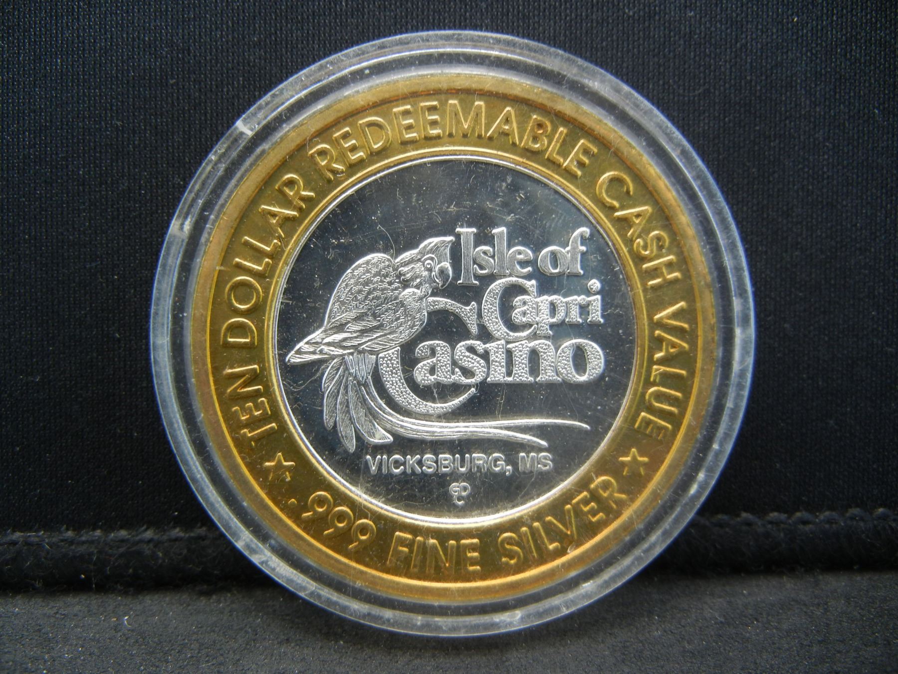 (ISLE OF CAPRI CASINO) SILVER (.999) VICKSBURG/MS, CASINO COIN, LIMITED EDITION