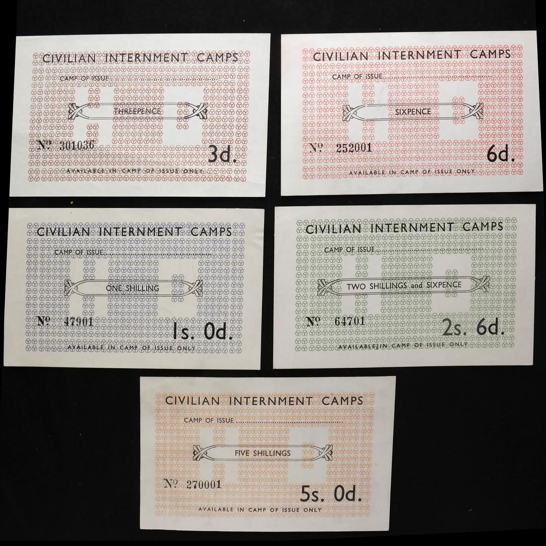 Complete set of unissued examples of the 3d (serial #301036), 6d (#252001), 1sh (#47901), 2sh6d (#64701) and 5sh (#270001), Quarmby-431 to 435, Campbell-5346 to 5350, measure approx 136 to 140 by 83mm, sound and About Uncirculated to Uncirculated condition.