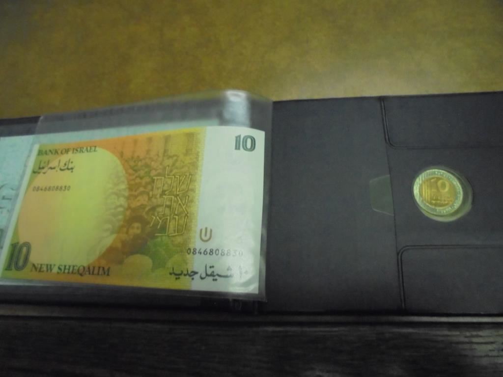 CURRENCY AND A 1985 10 NEW SHEQALIM BI-METAL COIN, ORIGINAL MINT PACKAGING