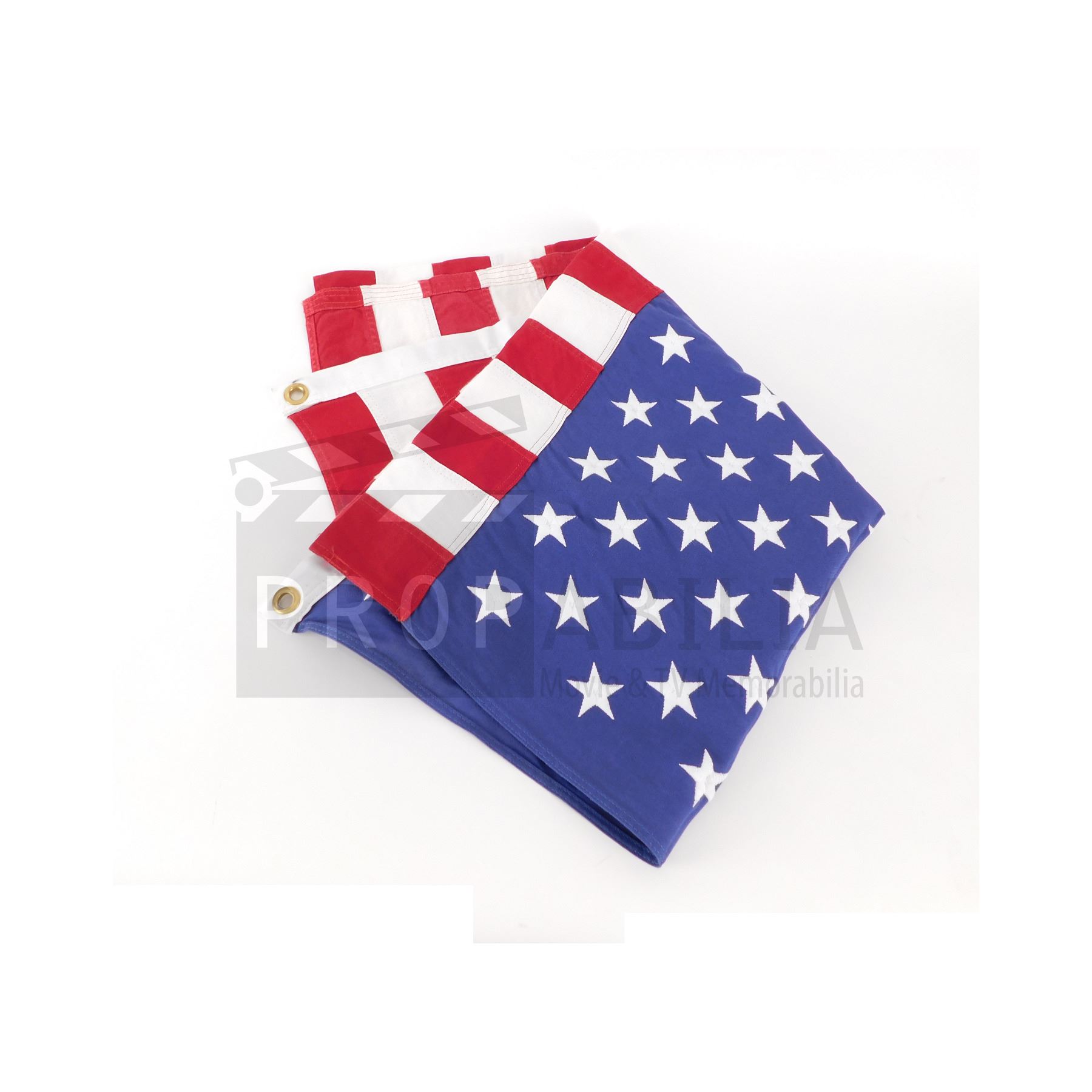 This prop flag was obtained from the production company of the film made in Port Hope, Ontario. This is one of the items purchased for production and was used in filming
