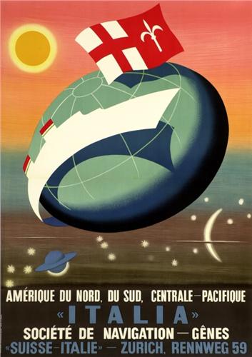 "ITALIA" SOCIETE DE NAVIGATION-GÊNES. (1920 CA.). 137,5x101cm. (54x39,6in.). Litografía. A-. Entelado.