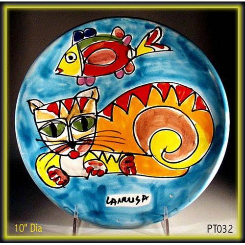 If you are REALLY interested in this item, please note that for Ebay Live Auction only bids at or above $150 will be successful and meet our reserve. You are bidding on a spectacular PICASSO style wall plaque measuring approx. 10 inches in diameter. Colorful abstract cat and fish on light aqua blue background, signed "LaMusa" VIETRI (Salerno). Excellent condition, no chips, cracks or repairs. A wonderful addition to your modern decor.