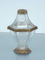 ITALIAN CRYSTAL BOWL WITH LID AND ACCENTED WITH BRASS ACCENTS - 4.5LX4WX5.5H