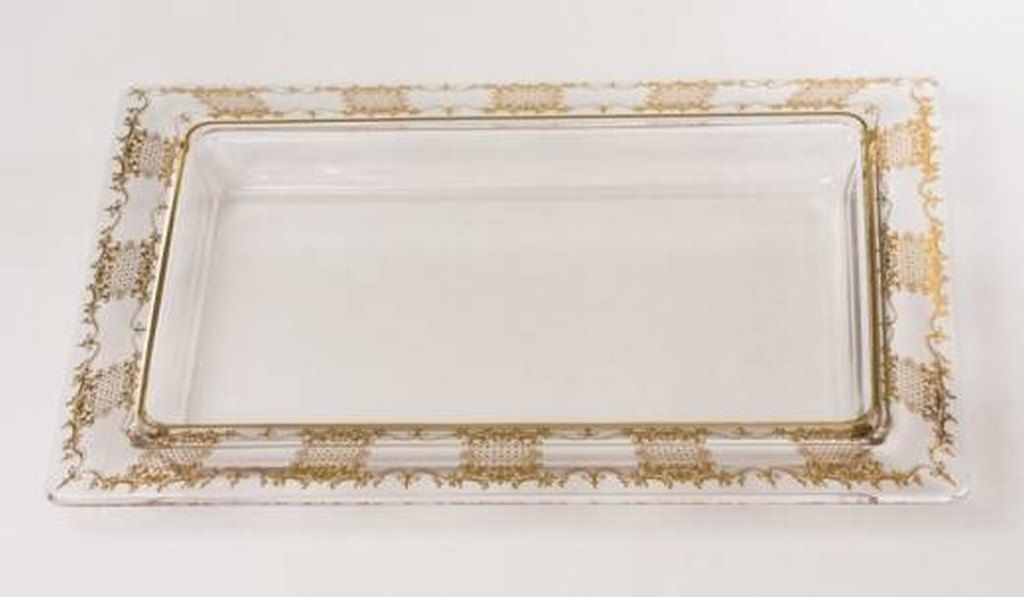 ITALIAN CRYSTAL TRAY - VENETIAN HAND PAINTED 14 KT GOLD ARTWORK - 15.7L" x 11.8W" x 1.5H"
