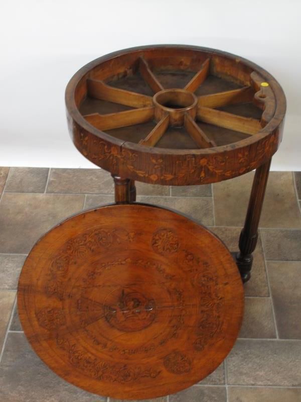 -with a swivel top and fitted interior, heavily inlaid depicting a man on a horse.
