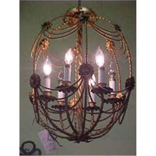 Wonderful Italian Gilt Tole Chandelier in a very unusual birdcage form, adorned with leaves and flowers, having six lights.