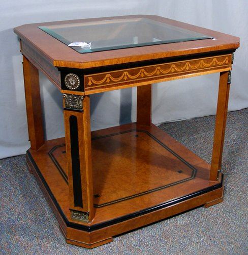 ITALIAN INLAID SIDE TABLE WITH INSET BEVELED GLASS TOP