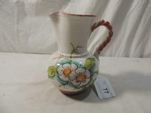 STONEWARE OR POTTERY HAND PAINTED WINE PITCHER