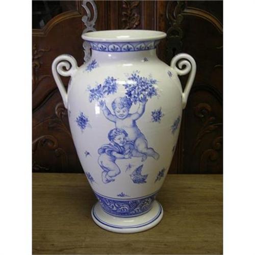 LOVELY ITALIAN MAJOLICA VASE WITH CERUBS DECORATION.<p>H.16" D.12".<p>MADE IN THE YEAR 1980<p>THE VASE IS IN PERFECT CONDITION.<p>ITEM COULD BE RETURNED IF IMPERFECTION ARE PRESENT FOR A FULL REFOUND.<p>> I WOULD LIKE INTRODUCE MYSELF, I AM TIZIANA BASETTI, I CAME FROM MILAN ITALY TO FLORIDA A FEW YEARS AGO. MY HUSBAND DIEGO AND I HAVE AN EXTENSIVE WORKING HISTORY IN ANTIQUES. WE OPENED A SUCCESFUL SHOP "OLD WORLD ANTIQUES" ELEVEN YEARS AGO, WE REPRESENT RENOUND ARTISAN AS WELL AS DILL IN QUALITY ANTIQUE FURNITURE. I'M NOW EXPANDING MY BUSINESS TO INCLUDE THE INTERNET BY OFFERING A LARGE INVENTORY OF UNIQUE AND ONE OF A KIND ITEMS FROM MY NATIVE ITALY; SUCH AS MAJIOLICA, SILVER,FURNITURE, MURANO GLASS, JEWLERY, COINS AND MANY OTHER ITEMS. IF YOU ARE LOOKING FOR ANY PARTICULAR ITALIAN OR EUROPEAN OBJECT, LET ME KNOW, I WILL DO MY BEST TO ACCOMPLICE YOU! I REALIZE IT TAKES TIME FOR US TO BUILD A TRUSTING PROFESSIONAL WORKING RELETIONSHIP. MY GOAL IS TO PROVIDE YOU WITH A TOP QUALITY ITEMS FOR YOUR HOMES, COLLECTION, OR CLIENTS, AS WELL AS, SHARE MY KNOWLEDGE OF ITALIAN ITEMS WITH YOU. PLEASE DO NOT HESITATE TO CONTACT ME WITH ANY OF YOUR QUESTIONS, CONCERNS,OR NEEDS.<p>THANK YOU FOR YOUR TIME OR CONSIDERATION, & OLSO FOR TELLING YOUR FRIENDS AND ASSOCIATES ABOUT THE SERVICES I PROVIDE.