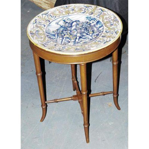 ITALIAN MAJOLICA CHARGER, 17" diameter, 19th century, on later stand, CONDITION REPORT: minor paint chips at edges.