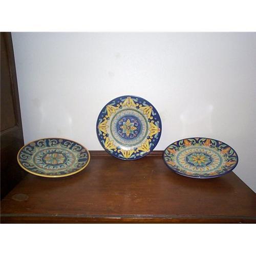 FANTASTIC ITALIAN MAJOLICA POLICROM PLATE SET OF THREE, WITH VERY NICE BRITE COLOR.<p>D.20"<p>THE PLATES ARE IN PERFECT CONDITION. ITEM COULD BE RETURNED IF IMPERFECTION ARE PRESENT FOR A FULL REFOUND.<p>p> I WOULD LIKE INTRODUCE MYSELF, I AM TIZIANA BASETTI, I CAME FROM MILAN ITALY TO FLORIDA A FEW YEARS AGO. MY HUSBAND DIEGO AND I HAVE AN EXTENSIVE WORKING HISTORY IN ANTIQUES. WE OPENED A SUCCESFUL SHOP "OLD WORLD ANTIQUES" ELEVEN YEARS AGO, WE REPRESENT RENOUND ARTISAN AS WELL AS DILL IN QUALITY ANTIQUE FURNITURE. I'M NOW EXPANDING MY BUSINESS TO INCLUDE THE INTERNET BY OFFERING A LARGE INVENTORY OF UNIQUE AND ONE OF A KIND ITEMS FROM MY NATIVE ITALY; SUCH AS MAJIOLICA, SILVER,FURNITURE, MURANO GLASS, JEWLERY, COINS AND MANY OTHER ITEMS. IF YOU ARE LOOKING FOR ANY PARTICULAR ITALIAN OR EUROPEAN OBJECT, LET ME KNOW, I WILL DO MY BEST TO ACCOMPLICE YOU! I REALIZE IT TAKES TIME FOR US TO BUILD A TRUSTING PROFESSIONAL WORKING RELETIONSHIP. MY GOAL IS TO PROVIDE YOU WITH A TOP QUALITY ITEMS FOR YOUR HOMES, COLLECTION, OR CLIENTS, AS WELL AS, SHARE MY KNOWLEDGE OF ITALIAN ITEMS WITH YOU. PLEASE DO NOT HESITATE TO CONTACT ME WITH ANY OF YOUR QUESTIONS, CONCERNS,OR NEEDS.<p>THANK YOU FOR YOUR TIME OR CONSIDERATION, & OLSO FOR TELLING YOUR FRIENDS AND ASSOCIATES ABOUT THE SE RVICES I PROVIDE.