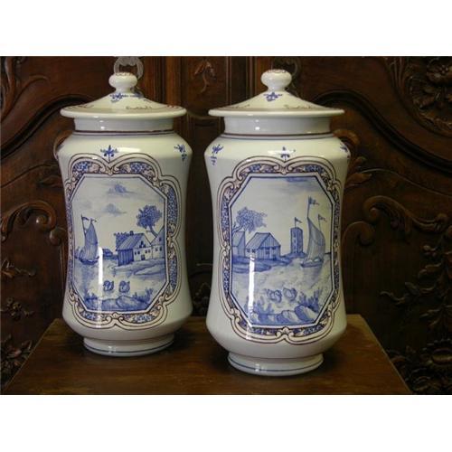 PAIR OF LOVELY ITALIAN MAJOLICA URNS DELFT STYLE, WITH BLU DECORATION. MADE IN THE YEAR 1980 CIRCA.<p>H.14" D.7"<p>THE URNS ARE IN PERFECT CONDITION. ITEM COULD BE RETURNED IF IMPERFECTION ARE PRESENT FOR A FULL REFOUND.<p>> I WOULD LIKE INTRODUCE MYSELF, I AM TIZIANA BASETTI, I CAME FROM MILAN ITALY TO FLORIDA A FEW YEARS AGO. MY HUSBAND DIEGO AND I HAVE AN EXTENSIVE WORKING HISTORY IN ANTIQUES. WE OPENED A SUCCESFUL SHOP "OLD WORLD ANTIQUES" ELEVEN YEARS AGO, WE REPRESENT RENOUND ARTISAN AS WELL AS DILL IN QUALITY ANTIQUE FURNITURE. I'M NOW EXPANDING MY BUSINESS TO INCLUDE THE INTERNET BY OFFERING A LARGE INVENTORY OF UNIQUE AND ONE OF A KIND ITEMS FROM MY NATIVE ITALY; SUCH AS MAJIOLICA, SILVER,FURNITURE, MURANO GLASS, JEWLERY, COINS AND MANY OTHER ITEMS. IF YOU ARE LOOKING FOR ANY PARTICULAR ITALIAN OR EUROPEAN OBJECT, LET ME KNOW, I WILL DO MY BEST TO ACCOMPLICE YOU! I REALIZE IT TAKES TIME FOR US TO BUILD A TRUSTING PROFESSIONAL WORKING RELETIONSHIP. MY GOAL IS TO PROVIDE YOU WITH A TOP QUALITY ITEMS FOR YOUR HOMES, COLLECTION, OR CLIENTS, AS WELL AS, SHARE MY KNOWLEDGE OF ITALIAN ITEMS WITH YOU. PLEASE DO NOT HESITATE TO CONTACT ME WITH ANY OF YOUR QUESTIONS, CONCERNS,OR NEEDS.<p>THANK YOU FOR YOUR TIME OR CONSIDERATION, & OLSO FOR TELLING YOUR FRIENDS AND ASSOCIATES ABOUT THE SERVICES I PROVIDE.