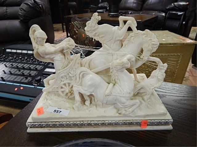 ITALIAN MARBLE STATUETTE - HORSE AND CHARIOT