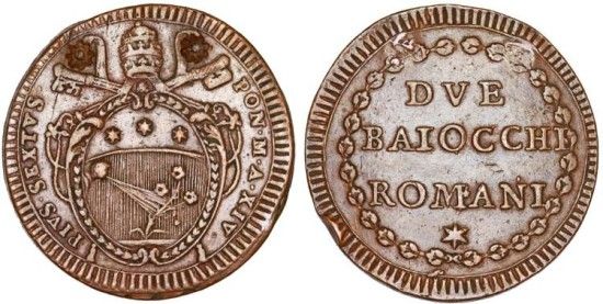 Obv: Tiara and keys over Arms, two 8 Petalflowers C/M to the sites.
