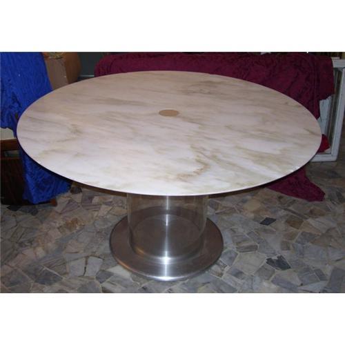 Fantastic Italian designer 1970 SORMANI. Marble top with plastic- rigid plexiglass base and heavy foot. Good conditions except a little crack on border. Ask for shipping rates: they depend on your country and zip. diameter 130 cm, 73 cm h