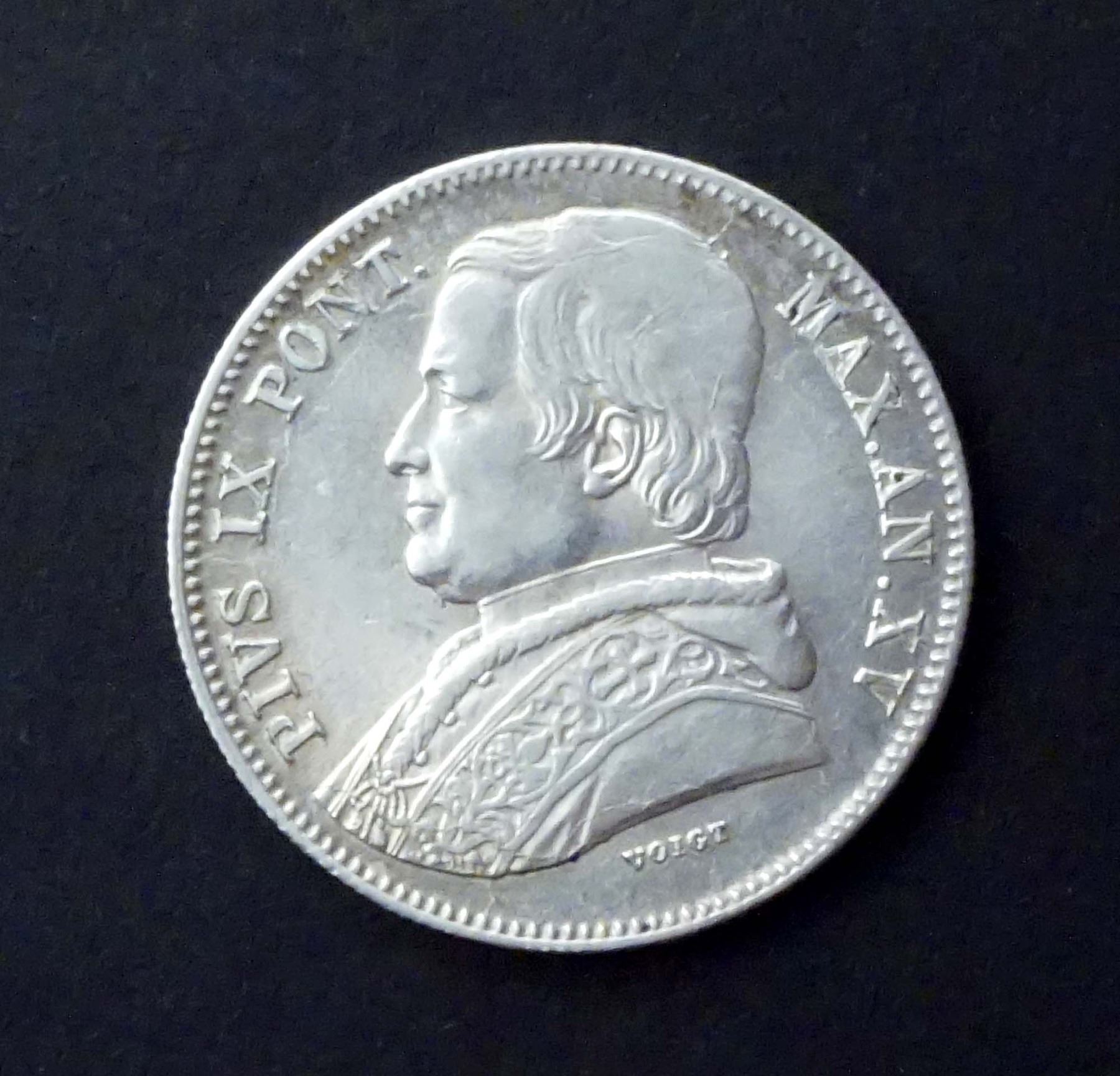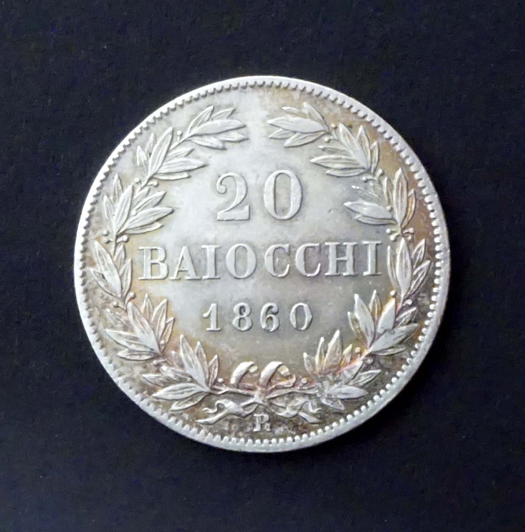 ITALIAN STATES 1860XVR PAPAL STATES KM# 1360 20 Baiochhi Silver 5.7 gms.UNIQUE