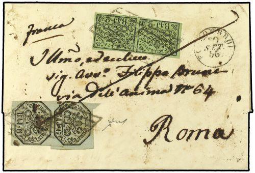 3(2),7(2) 1856 Envuelta circulada a ROMA. 2 baj. (2) y 6 baj. (2).