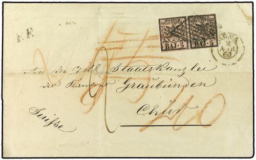 1860 ROMA a CHUR (Suiza). 5 baj. (2). Tasa Suiza de "55" rectificada a "40".