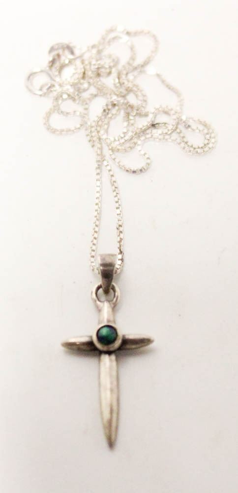 ITALIAN STERLING SILVER CHAIN W/CROSS/BLUE STONE