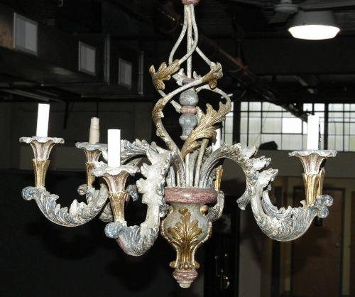 ITALIAN STYLE POLYCHROMED CHANDELIER, some cracks to gesso PACKING AND SHIPPING excl. insurance w/i Contintental U.S. see recommended shippers