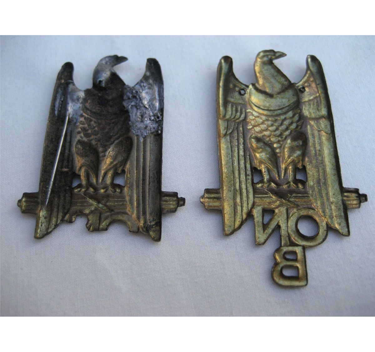 Pair Italian ONB Badges "Opera Nazionale Balilla" fascist youth Org. (one is broken, both lacking pins on back) The "Opera Nazionale Balilla" was an Italian Fascist youtl "h organization designed to work alongside the education system of Italy between 1926 and 1937