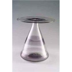 ITALIEN Vase, farbloses Glas mit bandförmiger, violetter Glasaufschmelzung. Über rundem Stand, konisch stark zusammen laufende Form, kragenartiger Mündungsrand horizontal ausgezogen. H.: 24,5 cm. Bez.: Firmenetikett. Wohl Fratelli Toso. 1952 Lit.: Barovier Mentasti, R., Mille Anni- di Arte Del Vetro A Venezia, Venedig 1982, Abb. S. 312, Nr. 654