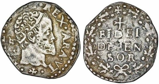 Obv: PHILIPP REX ARAGO VTRI ; Laureate head of Filippo II to right