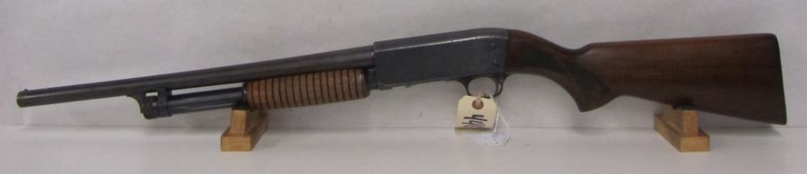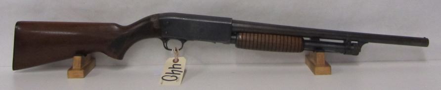 NON-RESTRICTED, 12GA 2 3/4", 18.5" BARREL, S/N 1033378, ENGRAVED ACTION, WOOD HAS LARGE CHIP BEHIND RECIEVER, BLUEING GOING HAS RUST AND SMALL PITTING, BORE HAS STEELSHOT SCORE MARKS.