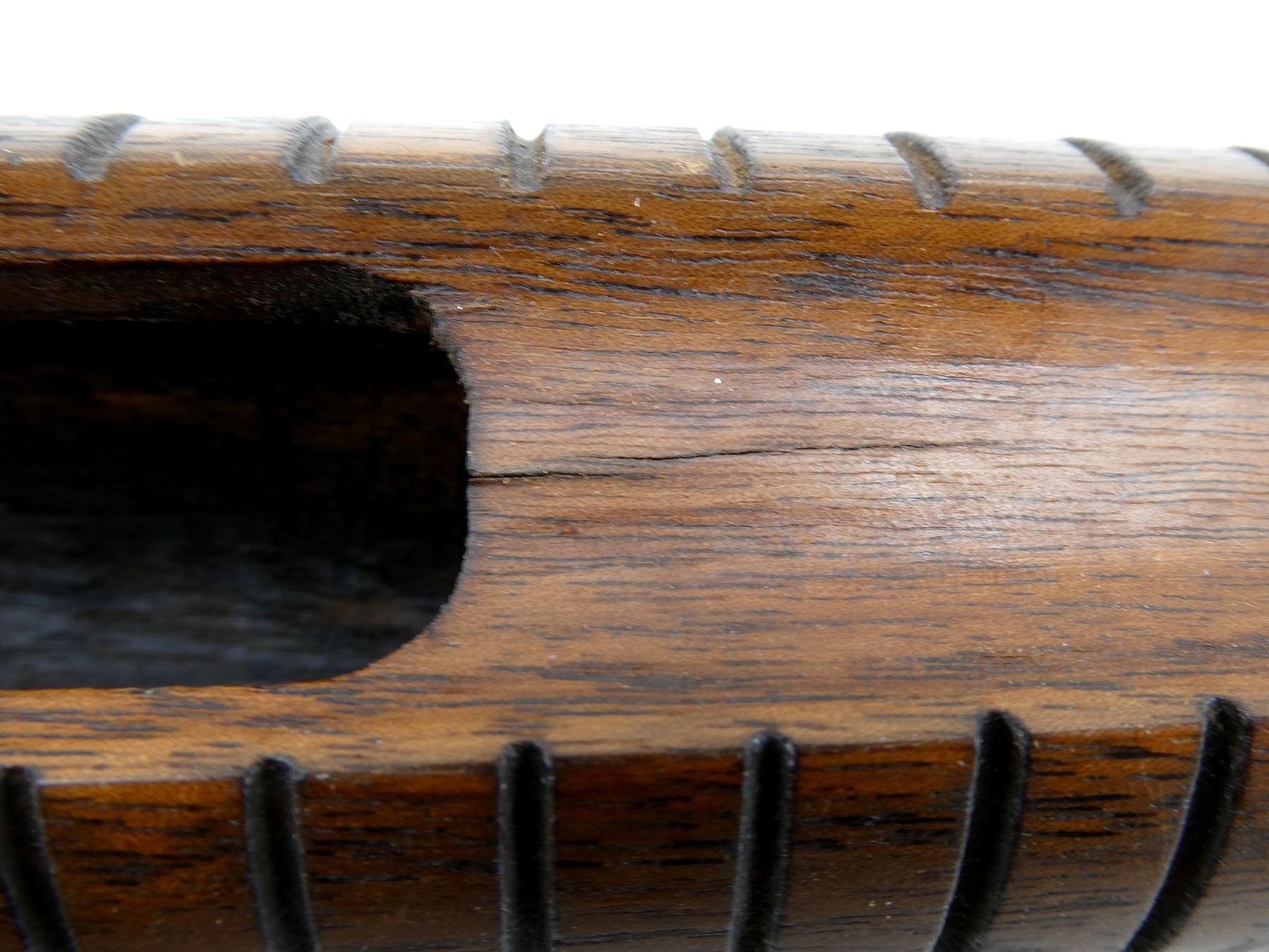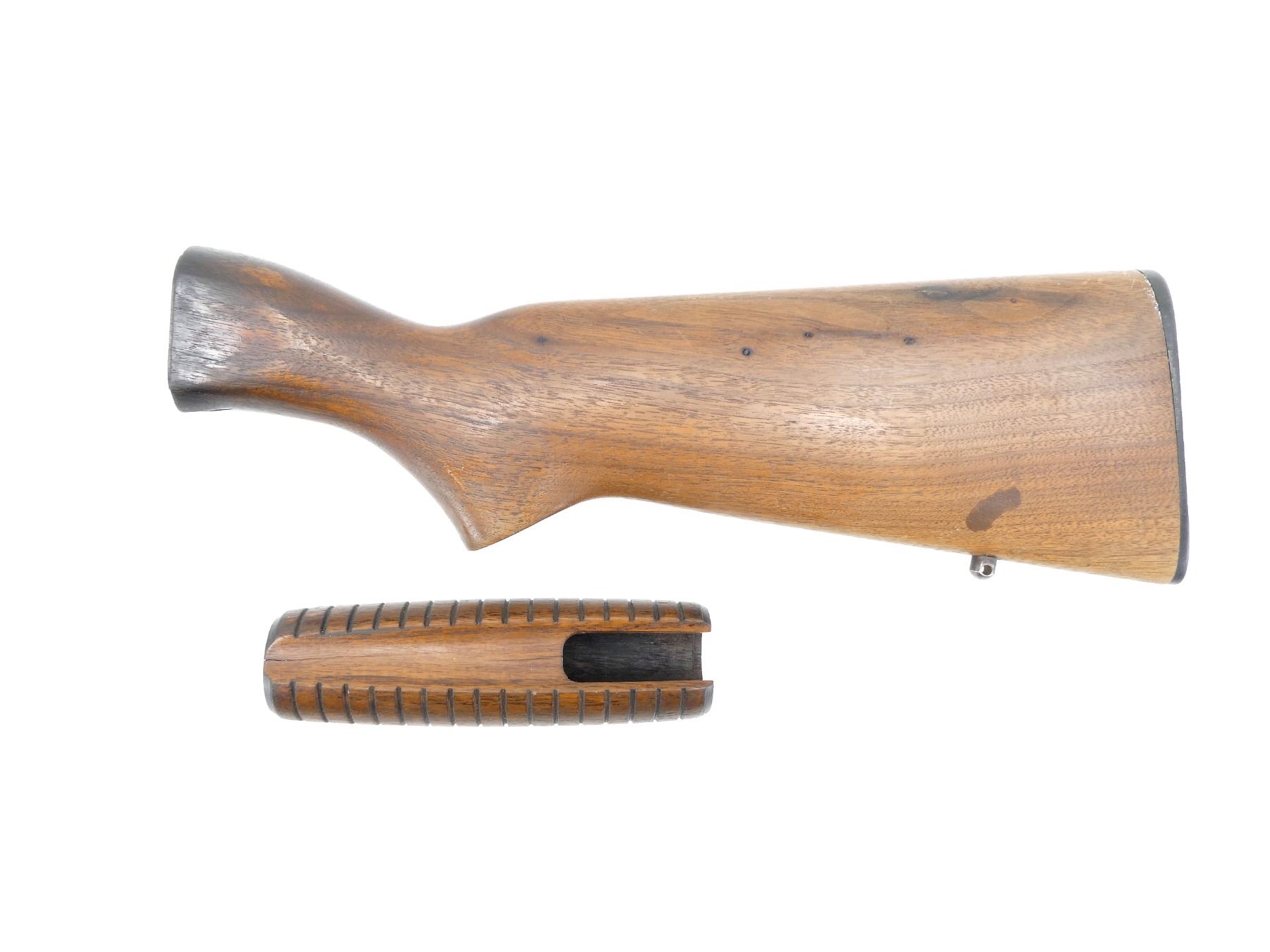 LOT INCLUDES; (1) GROOVED FOREARM, CRACKED, OAL APPROX. 6" & (1) PISTOL GRIP BUTT STOCK WITH BLACK POLYMER BUTT PLATE & STOCK BOLT, CHIPS & CRACKS, OAL APPROX. 13.5". MAY REQUIRE FITTING. SEE PHOTOS.