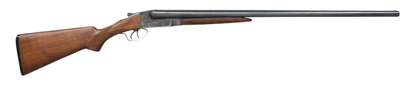 Cal. 16 GA, 2 1/2". S# 146071. Bbl 28". Left and right sides of receiver are engraved "ITHACA HAMMERLESS" within a scroll banner. Top of barrels are stamped "SMOKELESS POWDER STEEL". Barrels exhibit a blued finish. Wood buttstock and forend have been heavily sanded and recheckered. LOP: 14 1/4". Concave solid matte rib with brass bead front sight. Tang safety. Matching numbers are present on the receiver, barrels, and forend iron. CONDITION: receiver exhibits a mottled gray patina with dark oxidation on the right side. Barrels retain large amounts of their blued finish, exhibiting dark oxidation on the right side at the breech as well as scattered spots of wear and surface oxidation overall. Bores are bright, exhibiting pitting towards the breeches. Wood furniture shows heavy sanding marks, and are shy to the receiver. (23-2050/MLW). CURIO. $200-300.