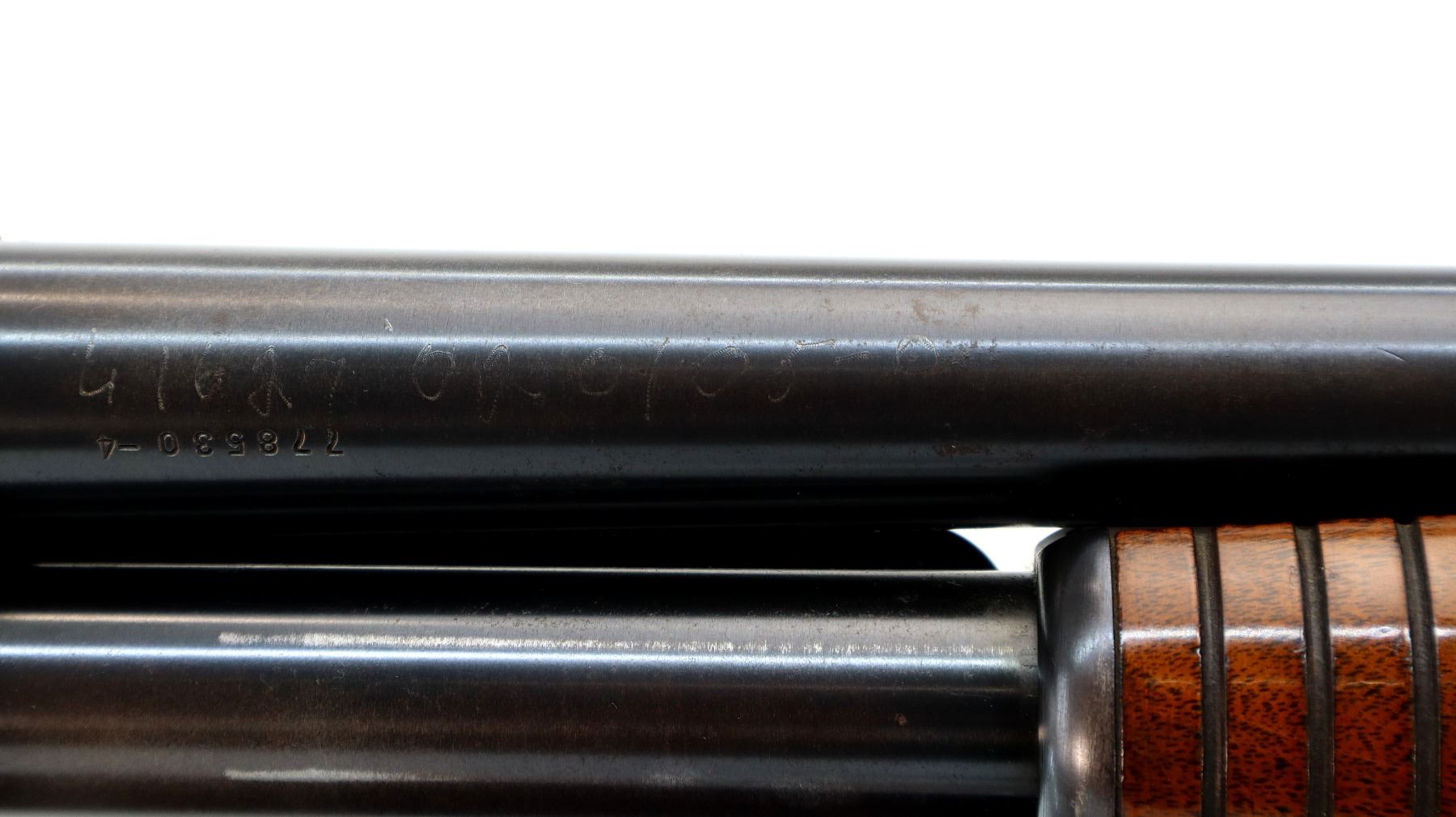 Wear: Metal finish shows a few light rust speckles, scratches, handling marks and wear. Stocks show some marks, scratches and wear.
