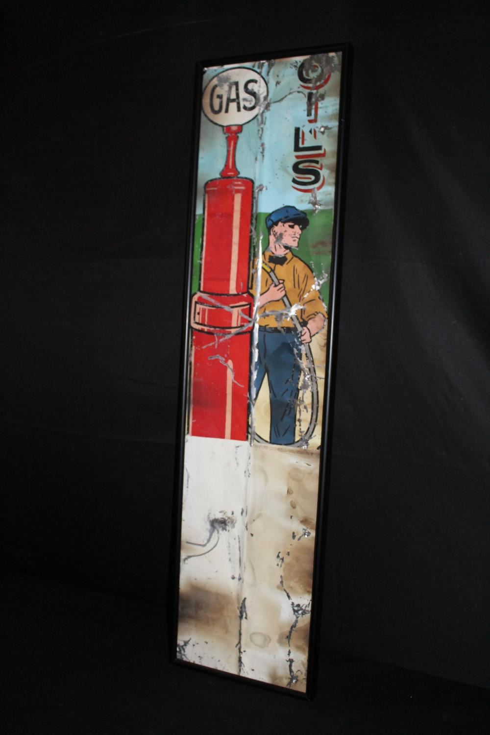 SST, 48 1/2 X 12 1/4. HAS WEAR, WRINKLES, PAINT FLAKES ETC. HAS BEEN NEWLY FRAMED. APPROXIMATE SHIPPING COST $24 TO $30. THIS ITEM IS GUARANTEED TO BE OLD, NEW FRAME. APPROXIMATE SHIPPING COST $30 TO $50. THIS