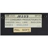 ITT 2020 personal computer, manufactured by ITT for the European market under license from Apple Computer as the first licensed Apple II clone. The top of the case features an "ITT 2020" plate, with a smaller "Apple System" emblem below the keyboard. On the bottom is an ITT Consumer Products (UK) Ltd. label, hand-labeled with serial no. "10307." Inside are an Apple Disk II Interface Card and a generic clone of the Microsoft Z80 SoftCard.